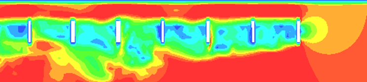 Pressure fluctuations generated from design#1 are almost periodic and therefore noise generated from these balustrades will be most likely of tonal noise type characterized by one or multi tones (peaks) occurring at specific frequencies. These tones can be heard from a far distance and can be very annoying to the human comfort inside or even outside the building.