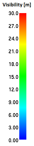 Smoke density reduced due to the activation of the blower located behind the fire | Soot Visibility (red color corresponds to high visibility) |