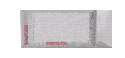 Related Animation: Snow particle drifting into a building through a louver | Related Animation: Corresponding snow – higher accumulation at the bottom of the left lateral wall |